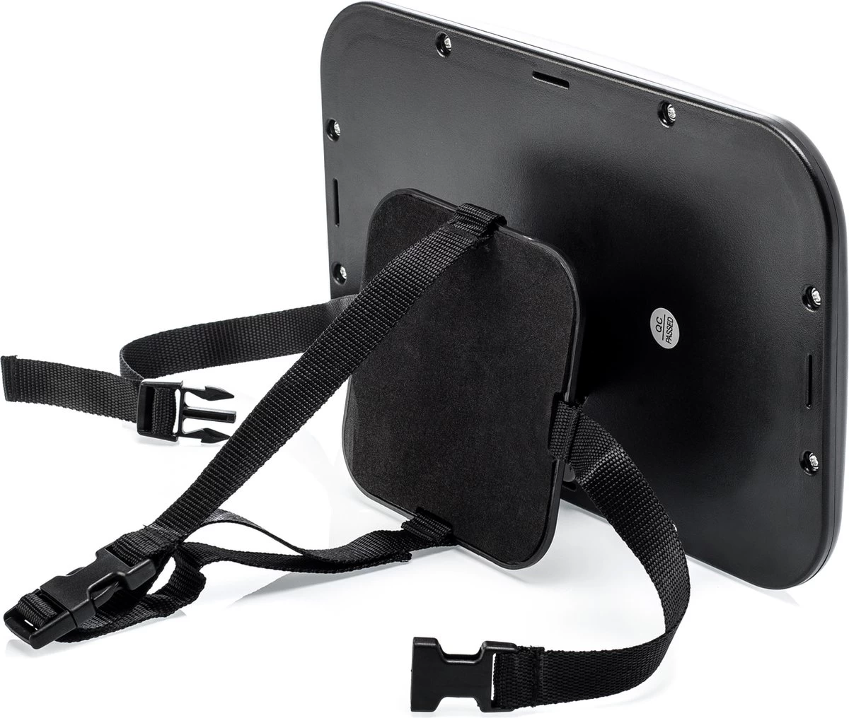 De babyspiegel bevestig je eenvoudig met verstelbare banden op de hoofdsteun van de achterbank. Zo kan de baby naar zichzelf kijken – en zich vermaken – terwijl jij ook perfect zicht hebt op je kindje.