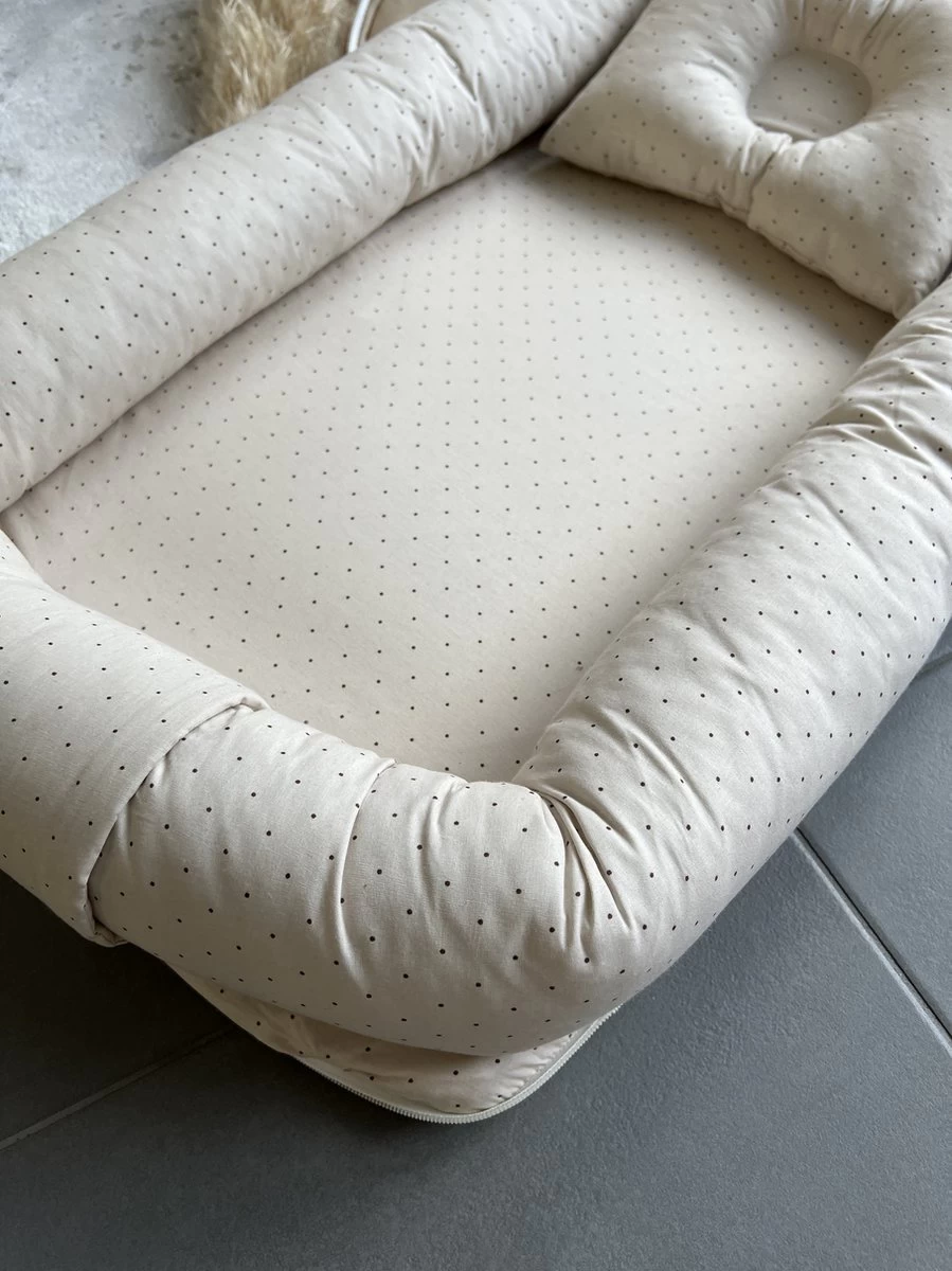 Dit model heeft zoals vele babynestjes opstaande randen die ervoor zorgen dat de baby niet uit het nestje kan rollen. Het stevige en zachte matrasje aan de onderkant geeft genoeg steun aan jouw baby. Aan het einde zit een klittenband waarmee je het voeteneinde open kunt maken en kan gebruiken als aankleedkussen of speelmatrasje voor oefeningen op de buik. Aan beide zijdes zijn vakken waar je bijvoorbeeld je sleutels en telefoon kan opbergen.