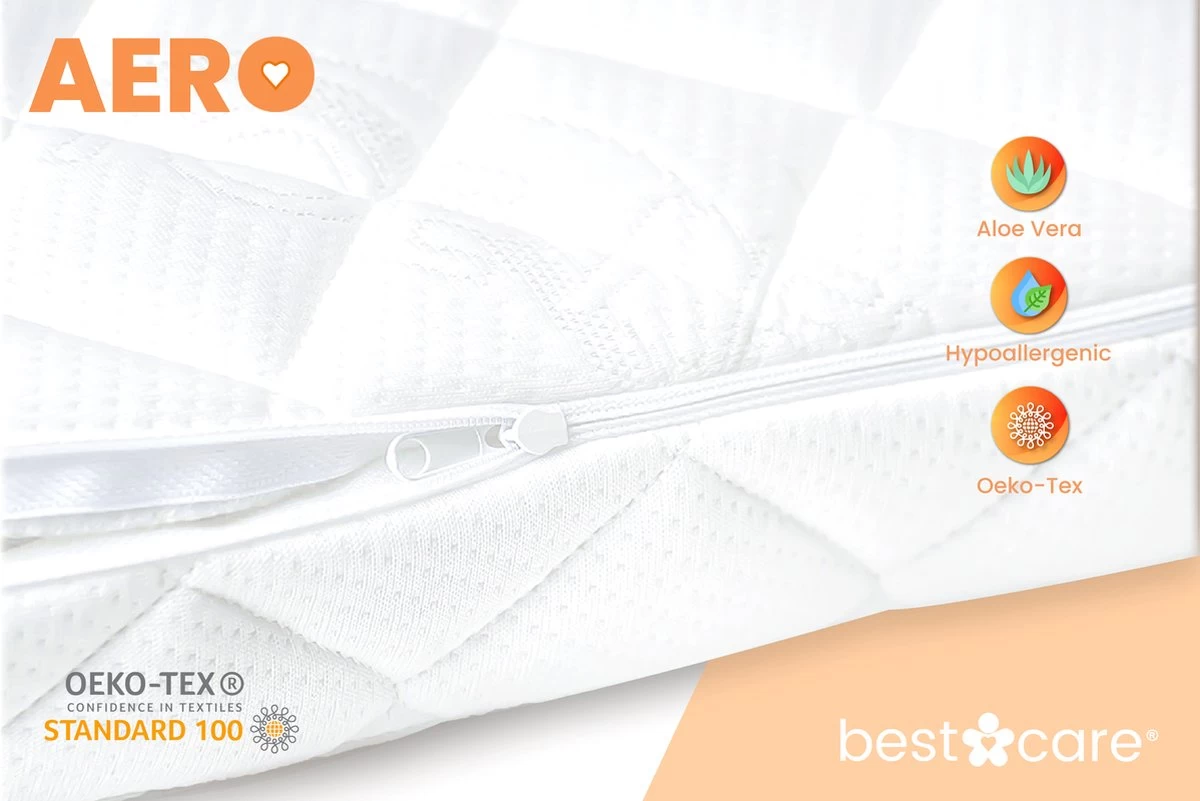 EASY CARE Overtrek: makkelijk te verwijderen dankzij de 3-zijdige rits en wasbaar tot 60 ° C. De matras heeft een Aloë Vera overtrek, die zijn vorm, zelfs na herhaaldelijk wassen, niet verliest.