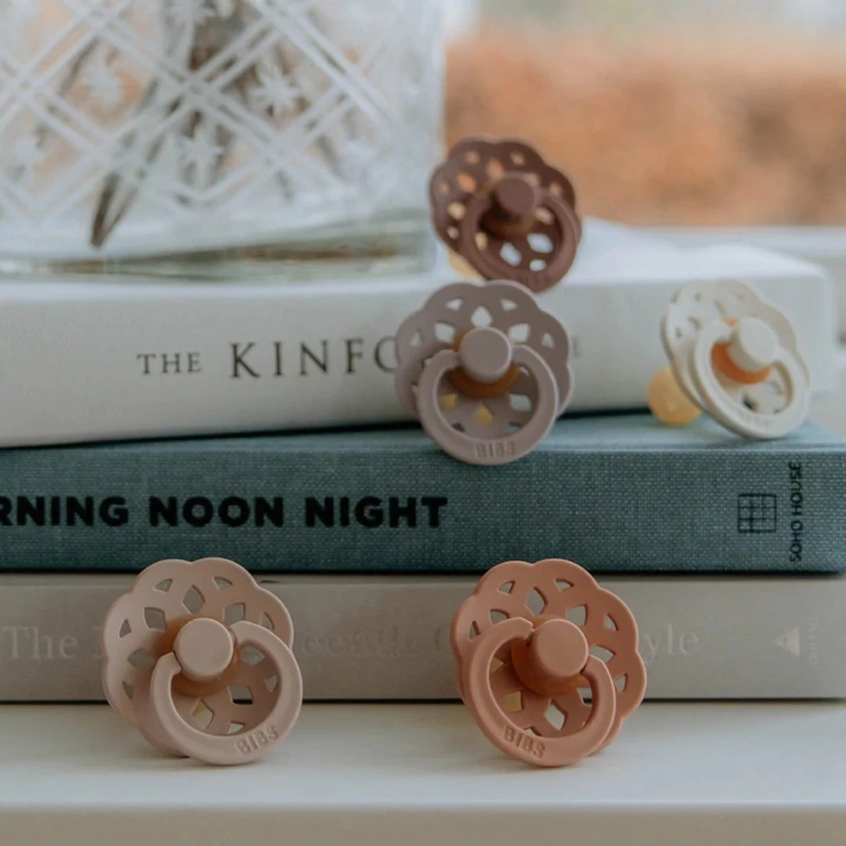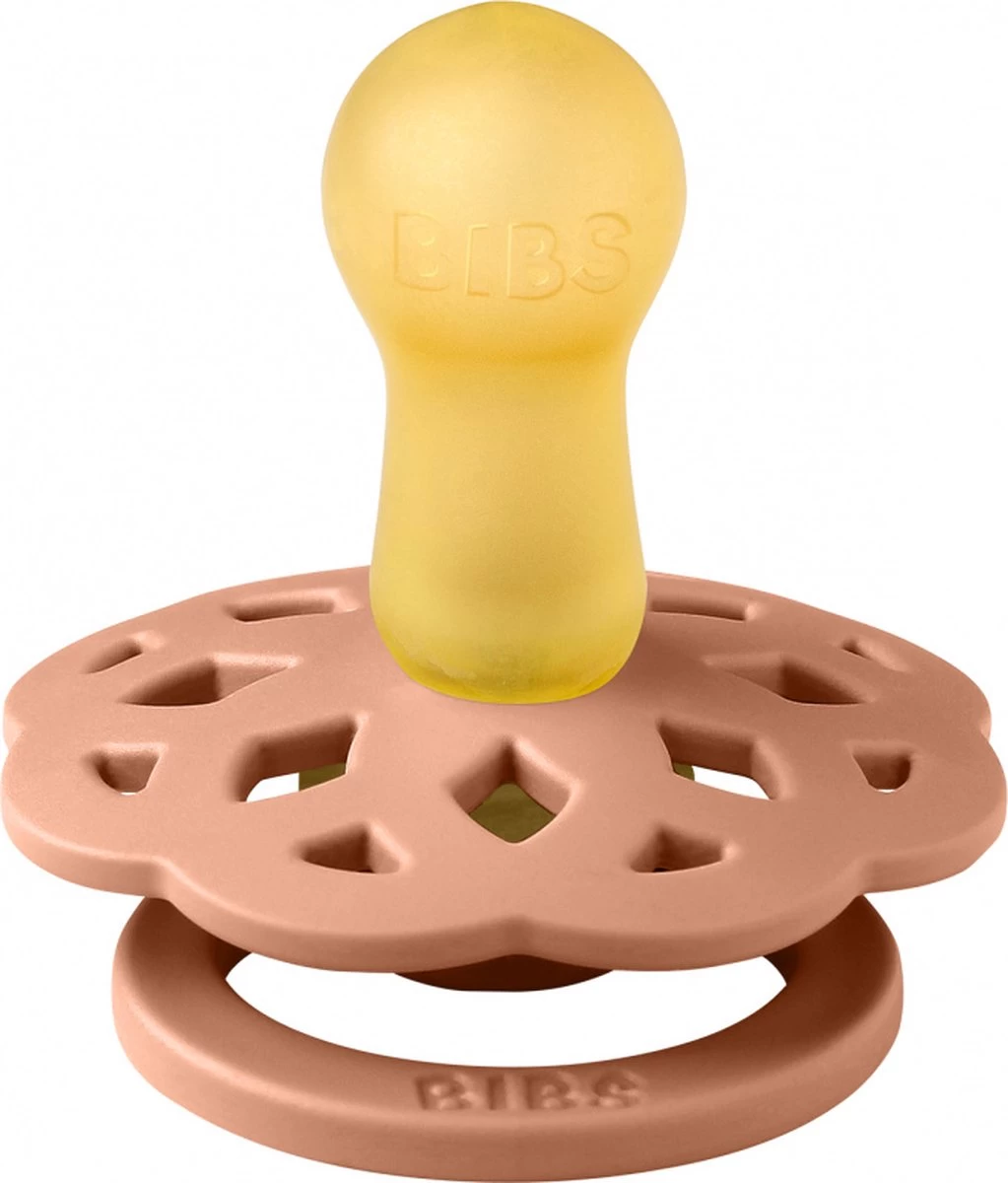 De BIBS fopspeen Bohemian Peach bevat een comfortabele ronde bohmian vorm. BIBS fopspenen bestaan uit 100% natuurlijk rubber, zijn flexibel en voelen fluweelzacht aan. De BIBS speen is ontwikkeld om de zuigreflex van het kindje te ondersteunen. Het schildje van de speen is rond en buigt weg van het gezichtje, waardoor eventuele irritaties worden verminderd. De BIBS fopspeentjes komen in énorm veel kleuren voor en hier blijven talloze prachtige creaties bijkomen. Naast het unieke design van de speen, heeft de BIBS speen ook hoogwaardige kwaliteiten én voelt deze comfortabel aan.