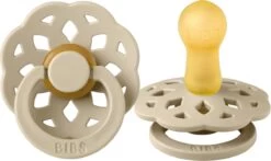 De BIBS fopspeen Bohmemian Vanilla bevat een comfortabele ronde bohemian vorm. BIBS fopspenen bestaan uit 100% natuurlijk rubber, zijn flexibel en voelen fluweelzacht aan. De BIBS speen is ontwikkeld om de zuigreflex van het kindje te ondersteunen. Het schildje van de speen is rond en buigt weg van het gezichtje, waardoor eventuele irritaties worden verminderd. De BIBS fopspeentjes komen in énorm veel kleuren voor en hier blijven talloze prachtige creaties bijkomen. Naast het unieke design van de speen, heeft de BIBS speen ook hoogwaardige kwaliteiten én voelt deze comfortabel aan.