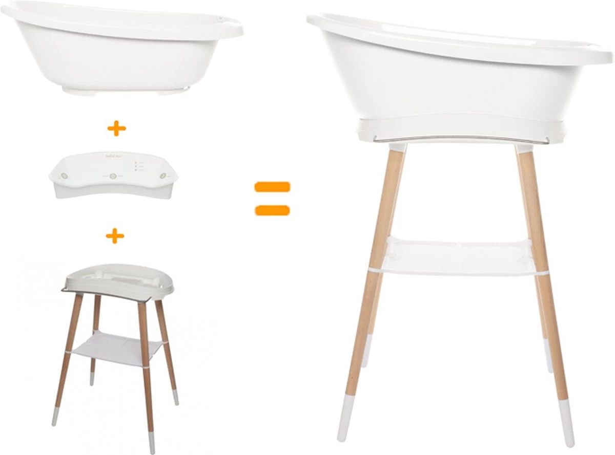 In het Bebe-Jou Sense Edition Bad Wit kan je kindje heerlijk badderen. Het babybadje bevat een digitale thermometer die zowel de kamertemperatuur als de watertemperatuur kan meten. Deze gegevens worden via een draadloze verbinding weergegeven op de digitale display. Ook is de display voorzien van een timer die in te stellen is op 10 minuten, zo zit je kindje nooit te lang in bad. De geadviseerde hoeveelheid water om het badje te vullen is ongeveer 14 liter. De ideale water temperatuur in het badje is 37 graden. Je kunt het Bebe-Jou badje eenvoudig op de Sense badstandaard klikken. Dankzij het kliksysteem kan het badje niet schuiven. Voor het vullen en legen van het babybadje bestaat er een luieremmer. Wanneer je het badje sneller leeg wilt hebben is de afvoerslang aan te raden.