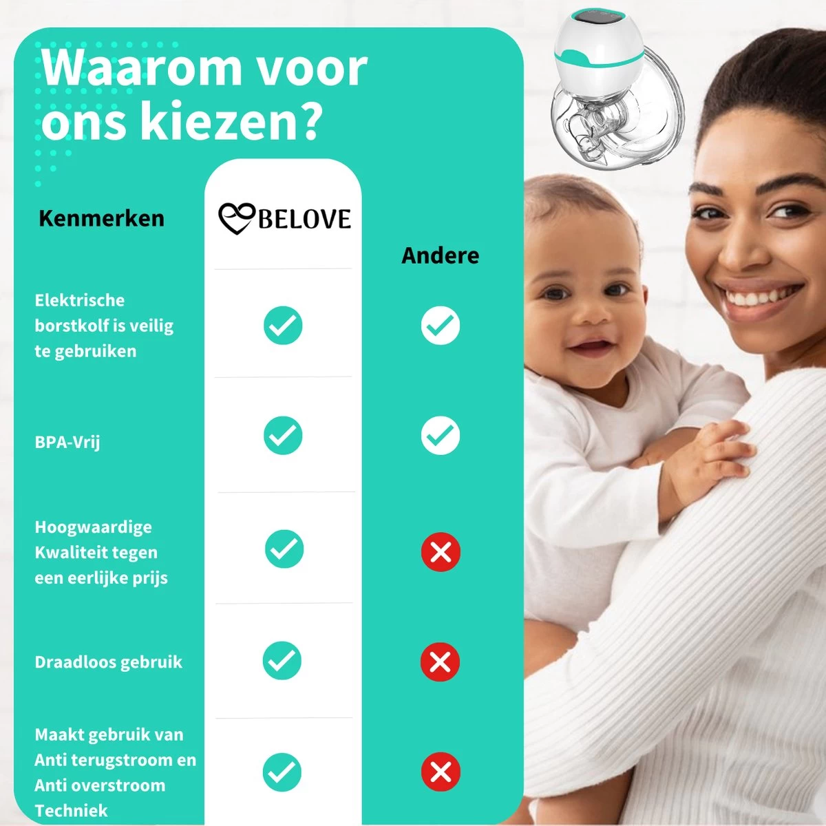 Wil je je pasgeboren baby de allerbeste verzorging bieden? Dan is de handsfree en draagbare Borstkolf van Belove het product voor jou.