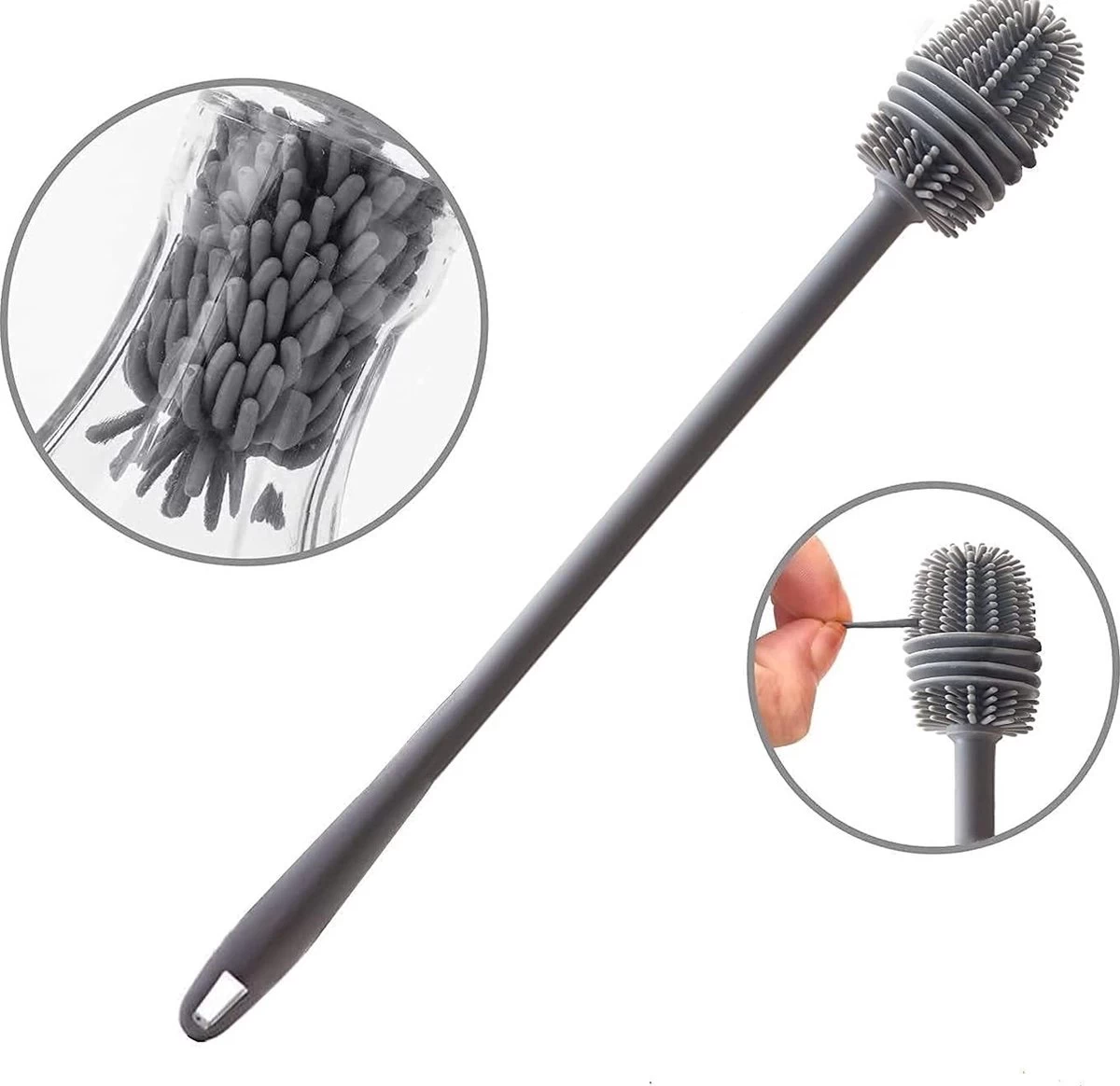 Onze flessenborstel is ook geschikt voor het reinigen van andere soorten flessen, zoals babyflessen, sportflessen en thermosflessen. Het handvat is comfortabel vast te houden en maakt het gemakkelijk om de borstel te gebruiken.
