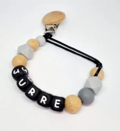 Speenkoord Met Naam Lalieloe – Speenhouder – Kraamcadeau – Speenketting – Woody Grey Naam