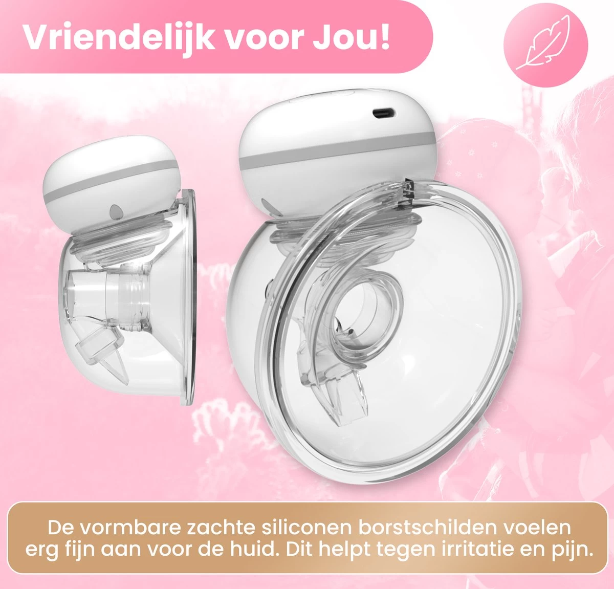 We weten hoe het voelt. Je borsten zijn wat gevoeliger en kunnen geïrriteerd of pijnlijk aanvoelen. Wij hebben alles op alles gezet om het kolven voor jou zo fijn mogelijk te maken. Met de vormbare zachte siliconen borstschilden van 24mm voelt deze borstkolf erg fijn voor je huid.