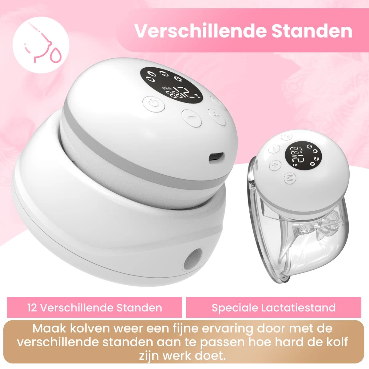 Voor vele pompen moet je gaan zitten en eigenlijk wachten tot het kolven klaar is. Bij deze borstkolf kan je gewoon je dagelijks bezigheden blijven doen, beide borsten tegelijkertijd kolven en na 20 minuten stopt de machine vanzelf! Ook wordt de melk opgevangen in een bakje van 180 ml voor elke borst. 360 ml in totaal. Let op, als je dubbel kolft kun je nog steeds handsfree je handen gebruiken, maar ben je niet zo vrij in je bewegen dan dat je enkel kolft.