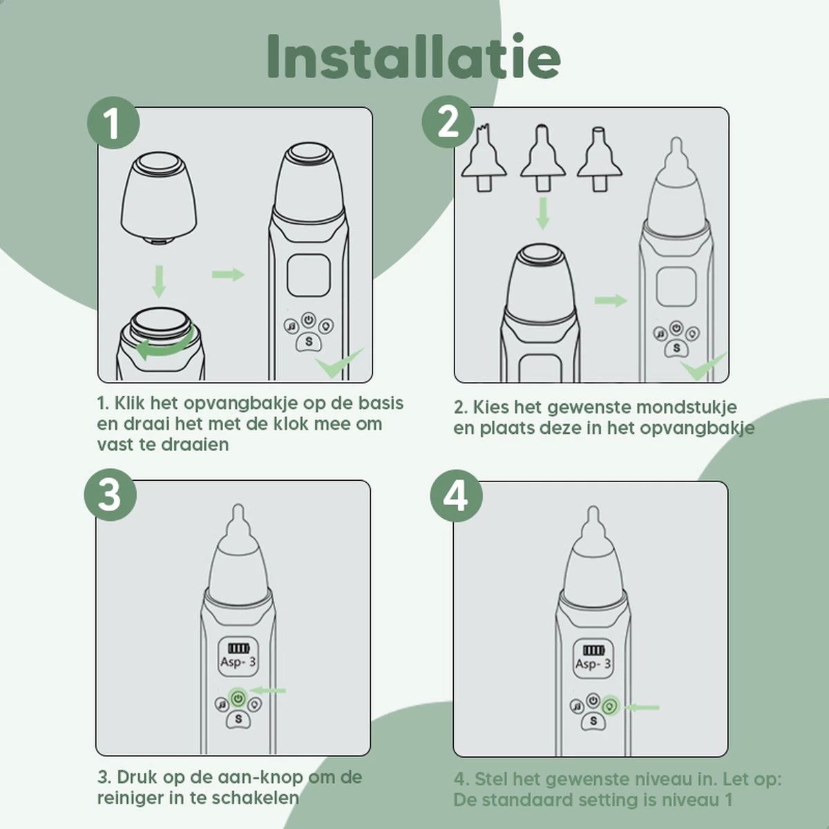 ✅ Dé complete set – Koop je de Hunnybunny neusreiniger? Dan krijg je 3 opzetstukjes gratis erbij. Met maar liefst een zuigkracht tot 65 kpa!