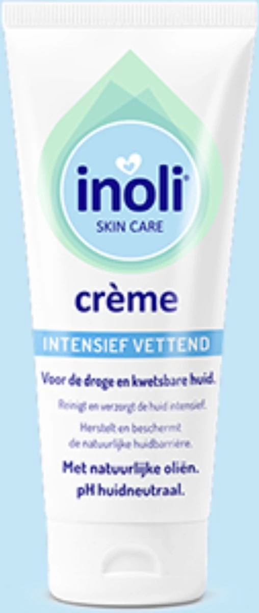 Inoli Baby Intensief Vettende Crème is speciaal ontwikkeld voor de droge en kwetsbare huid. De huid van je baby kan zeer droog zijn, met ruwe of schilferige plekjes. Inoli Intensief vettende baby crème met extra vettende natuurlijke oliën hydrateert en verzorgt de droge, tere babyhuid intensief en het versterkt de natuurlijke huidbarrière. Het voedt de huid en maakt deze weer zacht en soepel.