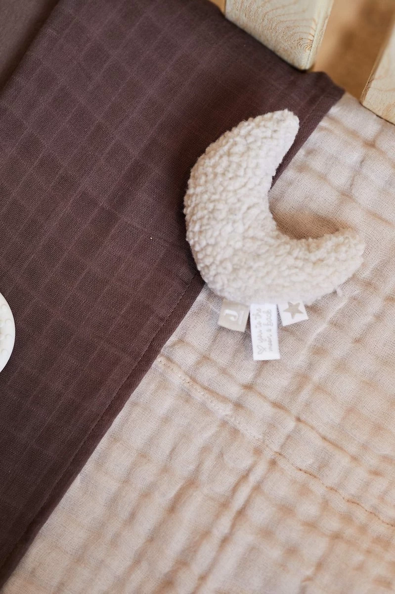 Meerlaagse hydroefiele deken voor wieg en kinderwagen. De luchtige deken in unikleur bestaat uit meerdere lagen hydrofiel katoen en is lekker zacht. Door zijn unikleur past hij leuk bij een hoeslakentje met print, maar ook perfect bij de Spring Knit items.