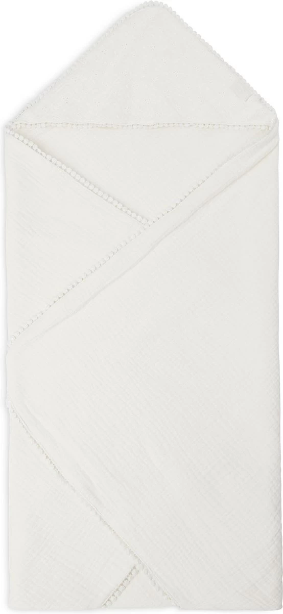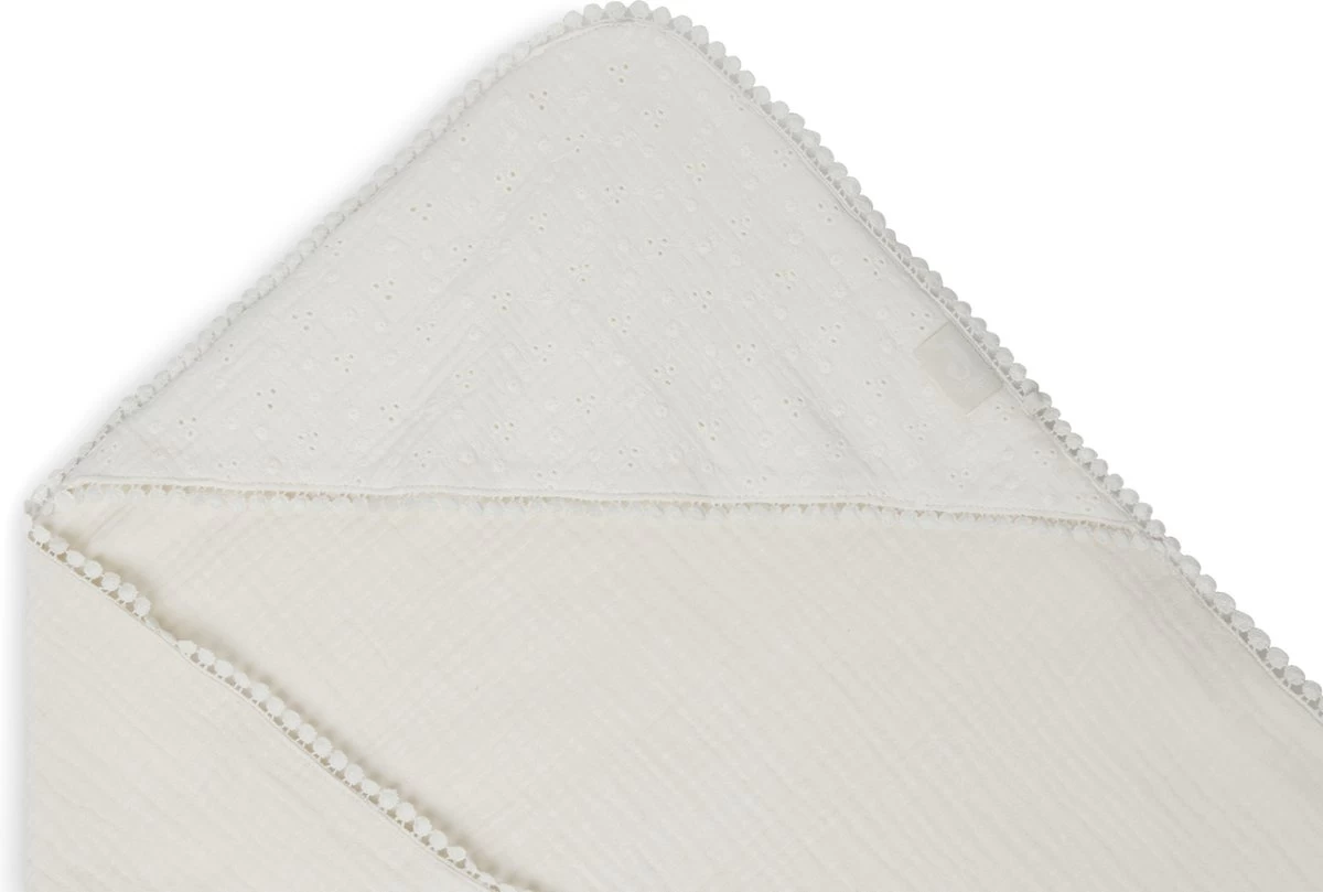 Deze badcape is gemaakt van muslin. Deze stof neemt erg goed water op en is heel zacht en lief voor het gevoelige huidje van jouw baby. In de stof zit een schattig embroidery werkje en de capuchon is afgewerkt met een sierrandje. Dit zorgt voor een hoge cuteness factor.