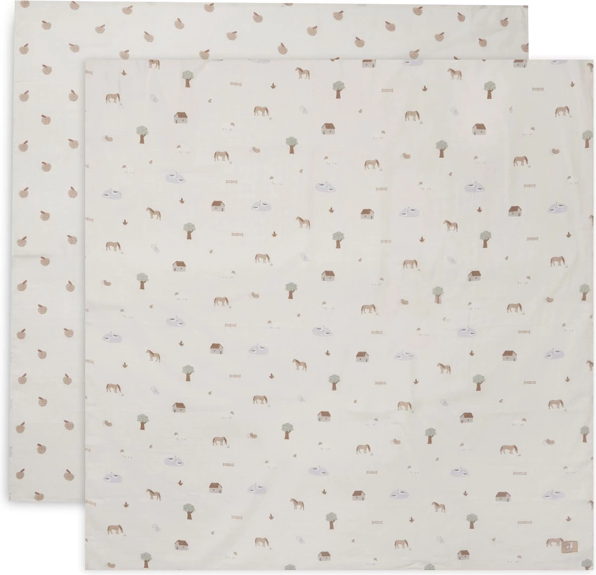 Een hydrofiele doek is een item wat je veelvuldig gebruikt bij baby’s, maar vaak ook nog bij peuters. Zo kun je hydrofiele doeken gebruiken als handdoek, spuugdoek, onderlegger tijdens het verschonen, maar ook tegen vlekken op het hoeslaken in het bedje of onderweg als kleedje. De mogelijkheden zijn eindeloos. Deze leuke hydrofiele doeken hebben een stoere all-over Farmprint op een Ivory ondergrond