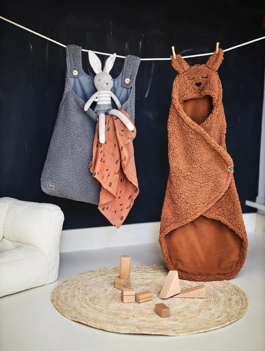 Wikkeldeken met gegarandeerd mega hoge cutenessfactor. De stof is van fluffly vachtlook aan de buitenkant en heerlijk comfortabel zacht aan de binnenkant.