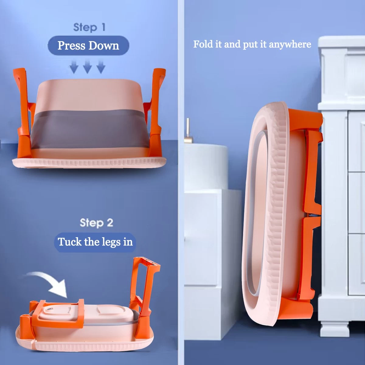 - Het opvouwbare babybad kan in twee stappen worden opgevouwen, en de hoogte na het vouwen is slechts 19cm. Wanneer niet in gebruik, kan het gemakkelijk worden geplaatst in de hoek, onder het bed, in de kast, overal, zonder de huisruimte te beïnvloeden.