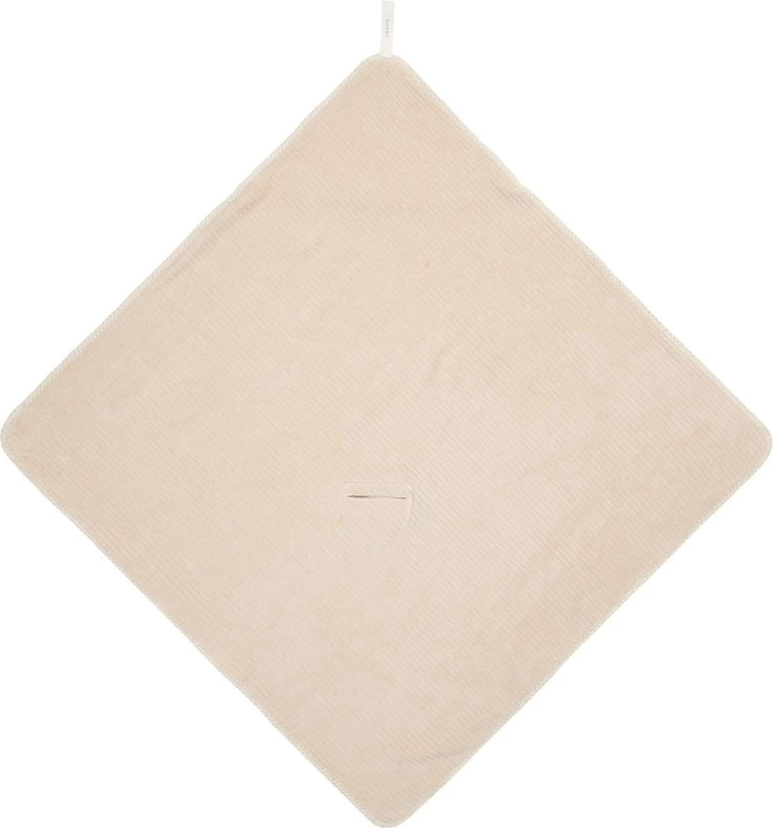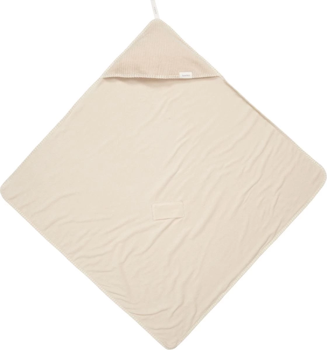 De Koeka omslagdoek met capuchon is met stretch badstof gevoerd en gebruik je om je baby in te wikkelen. Deze omslagdoek is voorzien van een opening zodat de doek ook met de gordels van de auto- of wipstoel gebruikt kan worden. Zo blijft je kleintje altijd comfortabel warm, zowel in huis als onderweg. De omslagdoek is ook fijn om te gebruiken tijdens het voeden en door de badstof voering kan je deze doek ook gebruiken om je kleintje mee afdrogen na het bad. Met de ophanglus hangt de doek altijd binnen handbereik in de bad- of babykamer.