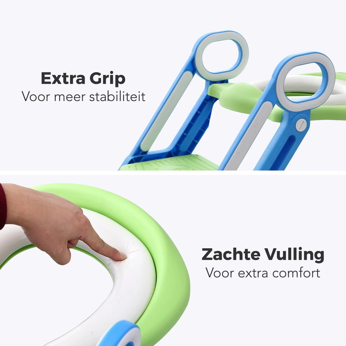 Help je kind op een leuke en veilige manier de eerste stappen te zetten naar zelfstandigheid en zindelijkheid met de LifeGoods WC verkleiner! Gelukkig weet je met onze groene toiletverkleiner zeker dat jouw kleintje een toiletbril heeft die altijd goed past. Dankzij de zachte vulling en anti-slip voetjes verzeker je dat jouw kindje altijd prettig en veilig naar het toilet kan. Het volledig opvouwbare design maakt ‘m gemakkelijk op te bergen en te vervoeren.