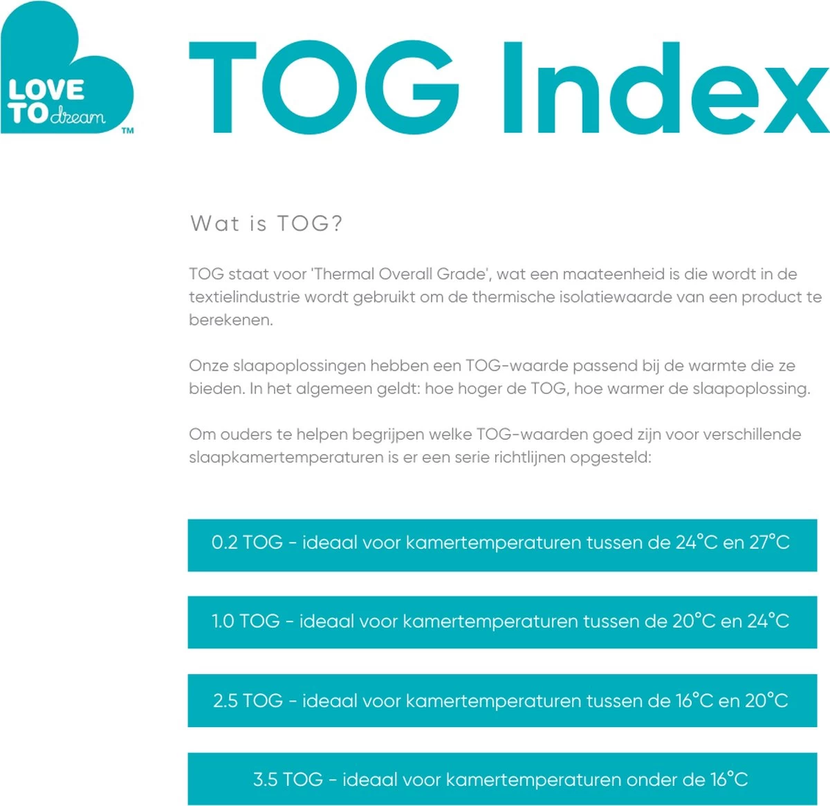 De Swaddle Up™ Overgangsslaapzak 1.0 TOG heeft een TOG-waarde van 1.0. Dit betekent dat deze slaapzak geschikt is voor een zomerse slaapkamertemperatuur tussen de 20°C en 24°C. Het gebruik van dekentjes en lakens wordt daarbij afgeraden.