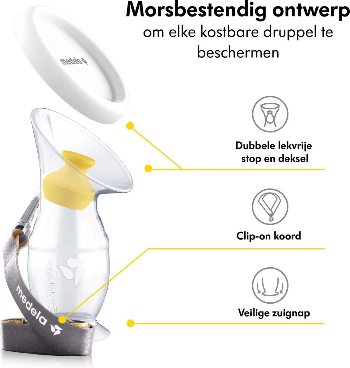Dankzij het dubbele lekvrije ontwerp, het koord en de zuignap gaat er met de Siliconen Moedermelkcollector van Medela geen druppel kostbare melk verloren, zodat alles bewaard blijft voor je baby.