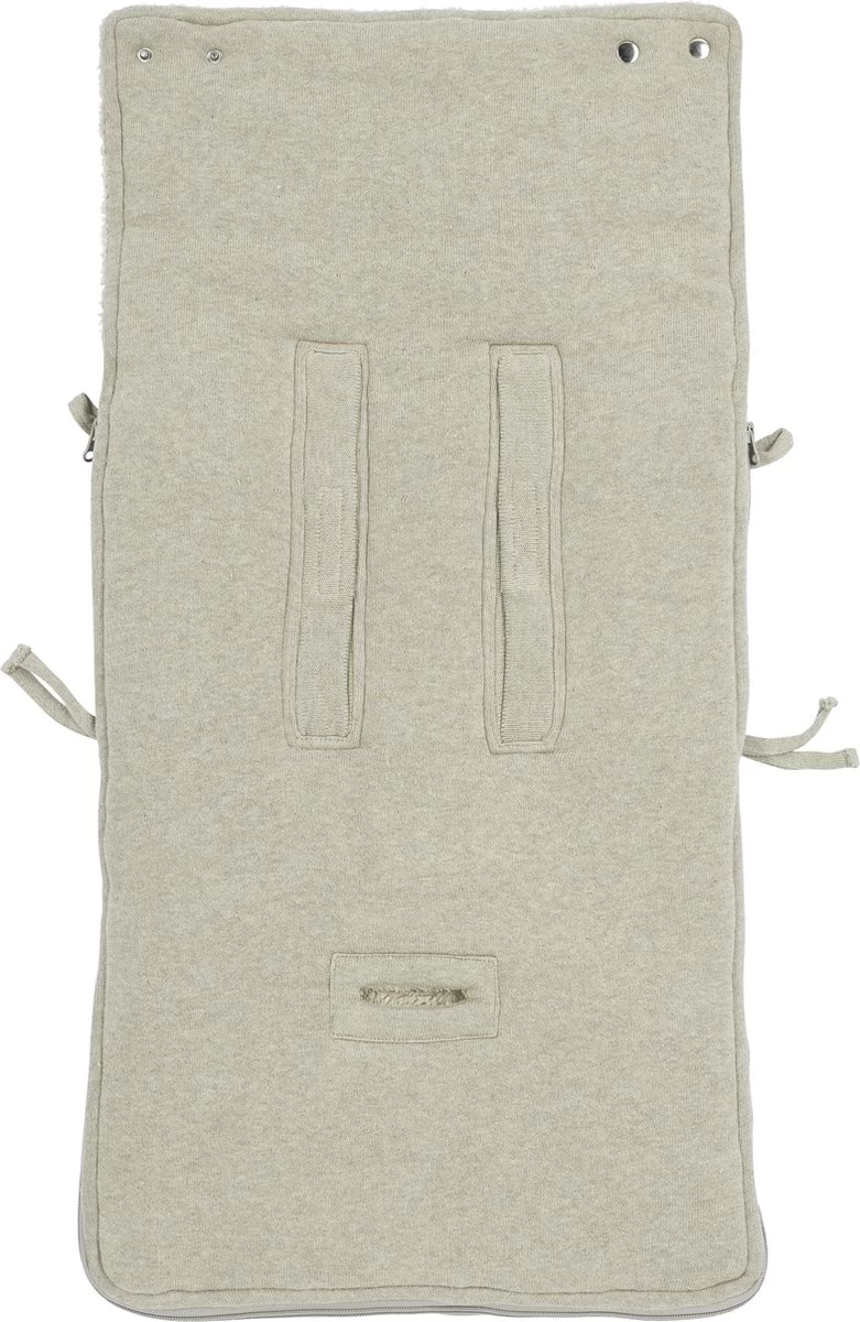 De voetenzak is gemaakt van 100% katoen en voelt hierdoor heerlijk zacht aan en ademt goed. De zak kun je eenvoudig open- en dichtmaken met een rits. Als het te warm wordt, kun je de voetenzak dus even open zetten, bijvoorbeeld als je langere tijd in de auto zit. Handig!