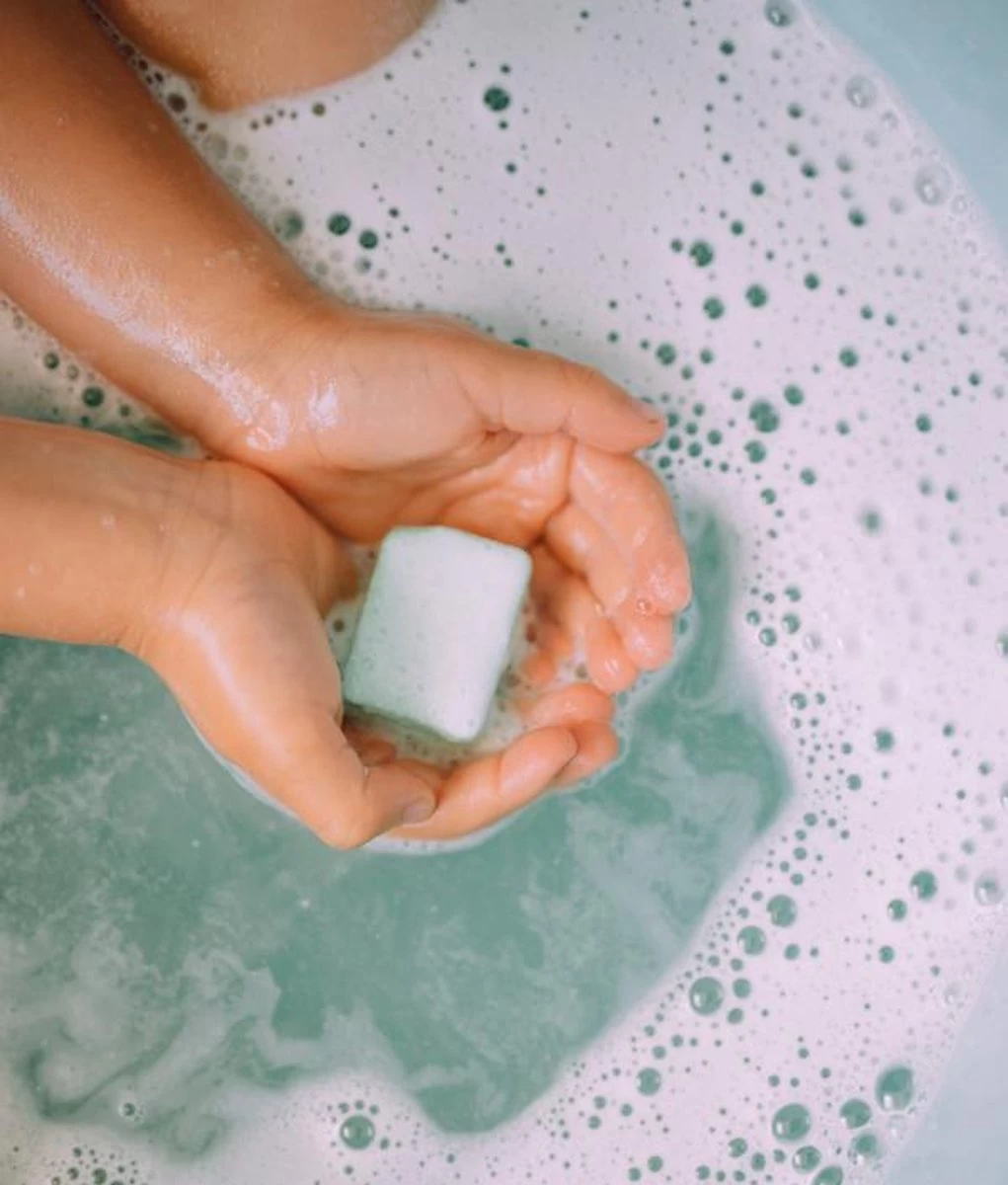 - Natuurlijke bruisballen (maar dan vierkant) met natuurlijke oliën