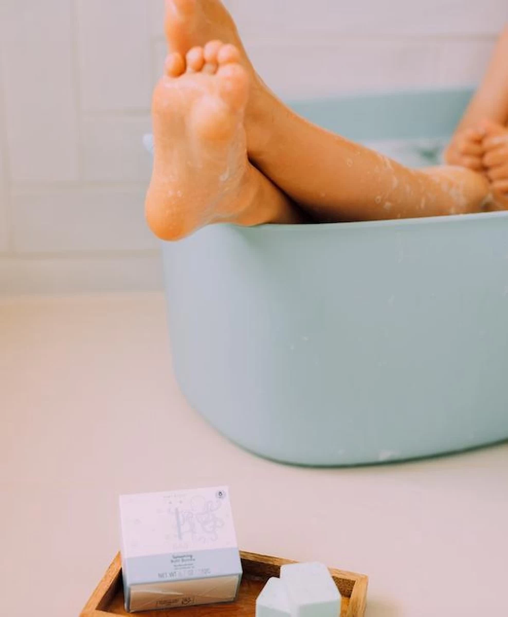 Haal een tablet uit de verpakking en leg ‘m in het bad (lauwwarm water). Het tablet zal licht gaan bruisen en het water een heerlijk geurend schuimlaagje geven. Dit geeft gegarandeerd een glimlach.