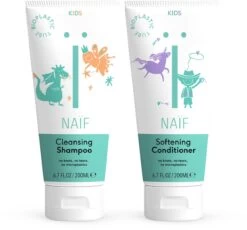 Naïf’s kindershampoo en conditioner maakt de haren van je koter schoon, zacht en doorkambaar. Verzorgt haar- én hoofdhuid, allemaal zonder microplastics, siliconen en bevat geen SLS/SLES. Ook mild voor de ogen dus. Zo zacht als de haren van een baby nog kunnen zijn, zo’n warboel kan het worden als de haren langer en dikker worden. En van het doorkammen van klitten wordt niemand blij. Naïf’s kindershampoo bevat een speciale anti-klitformule en zit boordevol natuurlijke ingrediënten, zoals katoenzaad extract en gehydrolyzeerd tarweproteïne (glutenvrij). Naif’s Kids Conditioner verzacht de haren van onze little ones. Dankzij de toevoeging van katoenzaadolie is het haar niet alleen verzorgd, maar ook nog eens pluisvrij. Zeker voor krullend haar is deze kinderconditioner een goede toevoeging. De conditioner gebruik je na het wassen met shampoo en breng je aan op de punten. Even laten zitten en uitspoelen maar! Je kunt de conditioner na iedere wasbeurt gebruiken. Kids love a good hairday!