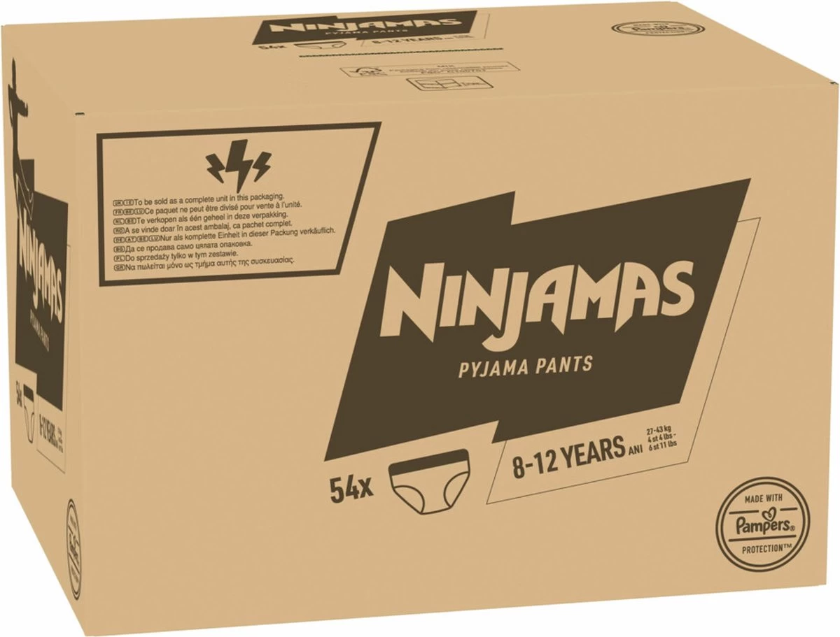 Maak kennis met … de Ninjamas Pyjama Pants! Pak bedplassen aan en laat je kind zelfverzekerd wakker worden met de Ninjama. De nachtluier biedt bescherming tegen lekken, de hele nacht lang. De Ninjamas met Pampers absorptie-technologie absorbeert vocht onmiddellijk voor een bescherming zoals je die nog nooit hebt gezien. De 360° tailleband past zich aan de taille van je kind aan voor een discrete en comfortabele pasvorm net zoals bij gewoon ondergoed, zodat je kind elke dag opgewekt wakker wordt. Net zoals bij jou, komt de veiligheid van je kind bij ons op de eerste plaats: De Ninjamas Pyjama Pants zijn dermatologisch getest, vrij van EU-parfumallergenen (zoals gereglementeerd in de regelgeving voor cosmetica N° 1223/2009) en gecertificeerd door Standard 100 door Oeko-Tex.