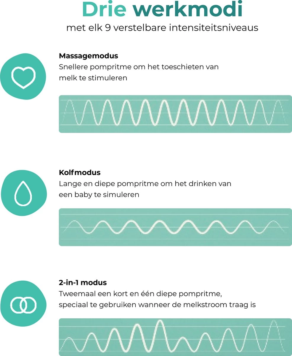 Alle borstkolven van Nutrea beschikken over de 3-fasen technologie, welke het natuurlijke zuiggedrag van een baby imiteert.