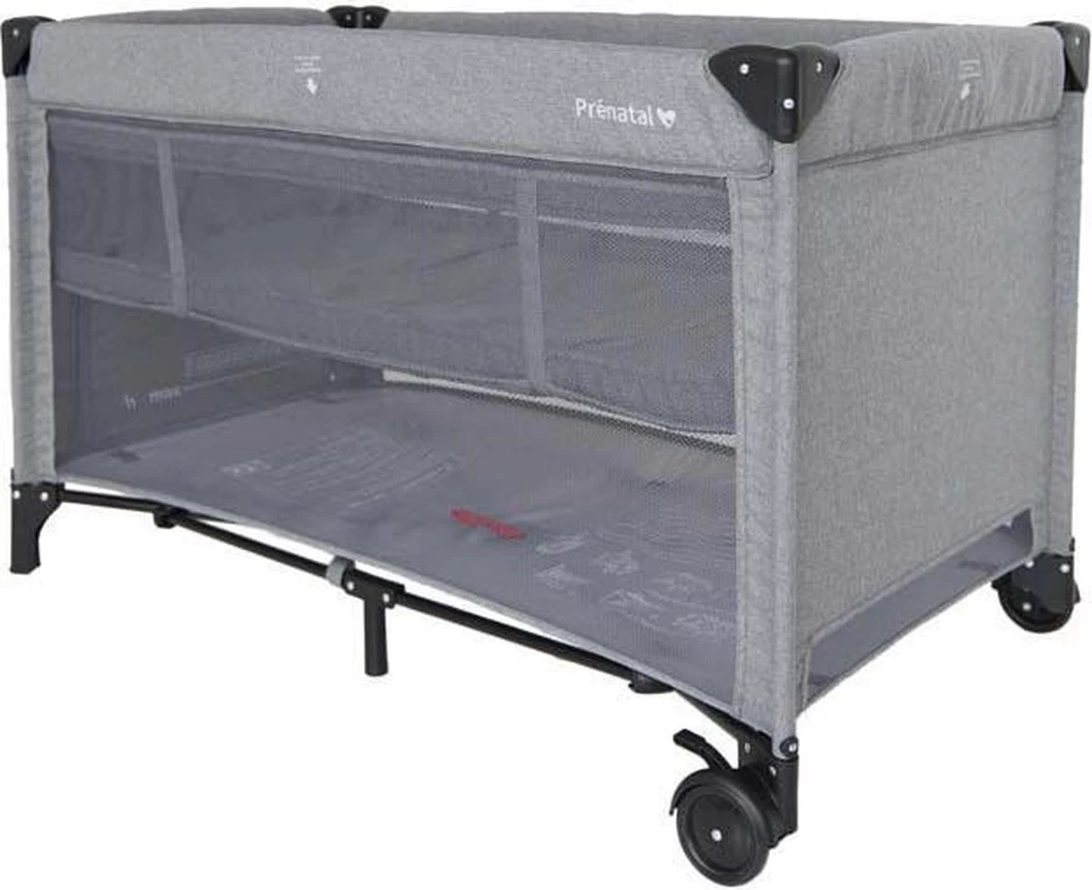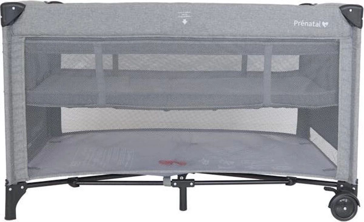 Het Prénatal campingbedje Luxe in grijs gemêleerde stof is het meest luxe campingbedje van Prénatal. Dit campingbedje is voorzien van wieltjes met een rem en een bodemverhoger. Deze bodemverhoger is ideaal voor kleine baby’s en kan er eenvoudig uit worden geritst wanneer je kindje groter wordt. De zijdes van gaas zorgen voor frisse lucht. Inclusief handige draagtas.