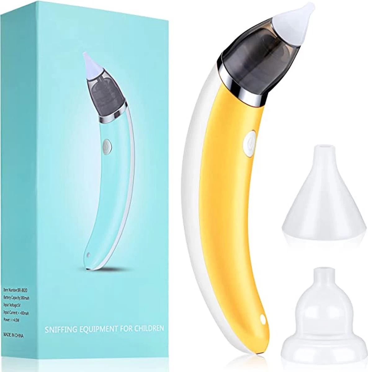 Premium Elektrische Oplaadbare Neus Reiniger Voor Baby En Kinderen – Inclusief Oplader, Handleiding En Batterijen – Hygiënische Neusreiniger – Baby Aspirator – Neuszuiger – Baby Neuspompje – Toetenveger – Baby Neusreiniger – Geel – Neusspoeler