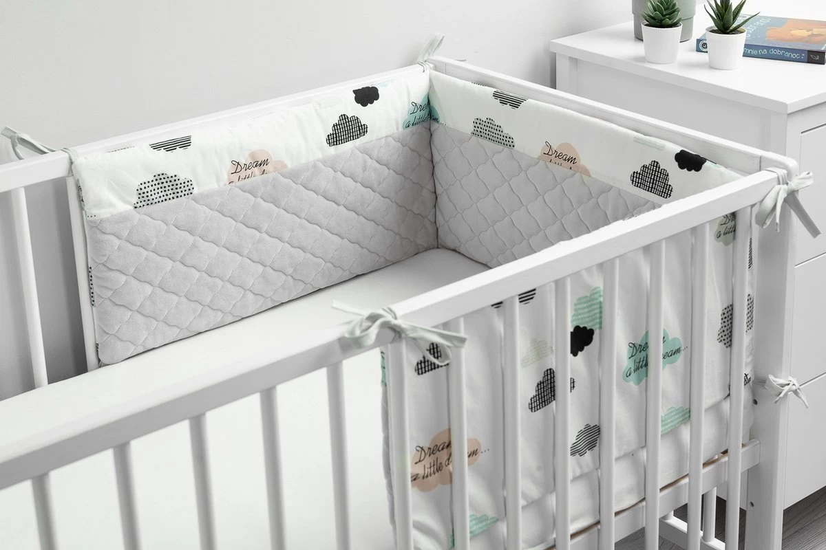 Sensillo Baby Bedbumper – Bedomrander – Anti Stootrand Ledikant – Bed Zijbeschermers – 180x30cm – Grijze Wolkjes
