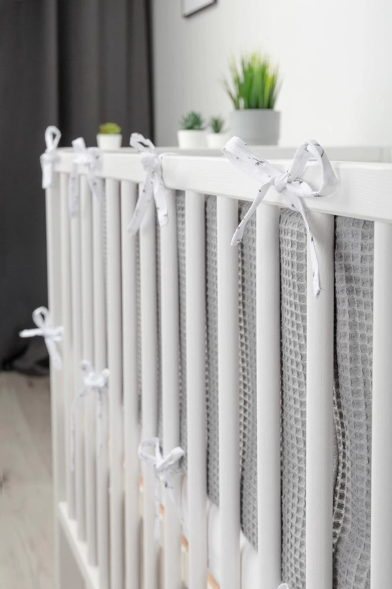 De dunne bedbumper van Sensillo is een alternatief voor dikke en zware bumpers die veel worden gebruikt in kinderbedden. De dunne anti-allergische eivormige vulling zorgt voor voldoende isolatie, beschermt het kind tegen verwondingen tijdens het bewegen in het bed, is vooral veilig en minimaliseert het risico op verstikking. De unieke uitstraling van de bumper bestaat uit een combinatie van twee materialen. De ene kant is gemaakt van zacht en aangenaam aanvoelend katoen met een wafelstructuur en de andere kant is van katoen met een kleurrijke print. Beide stoffen zijn Oeko-Tex gecertificeerd. Om de 30 cm zorgen ingenaaide tapes ervoor dat de bumper op de juiste plaats blijft.