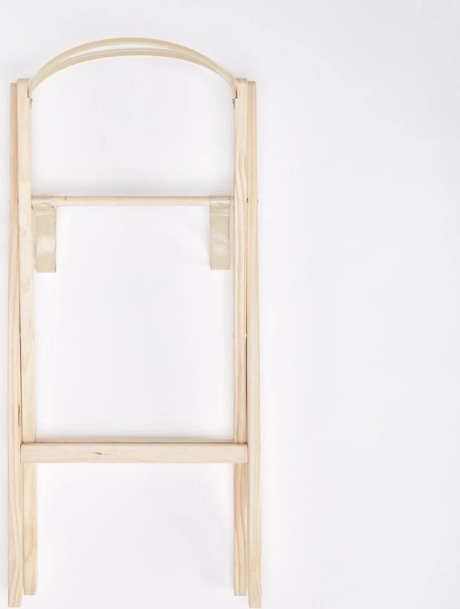Deze natuurlijk grenen houtstandaard zorgt dat je wieg op ooghoogte komt te staan, hierdoor kun je er gemakkelijker bij. De houten steunbeugels houden de Mozes-mand veilig vast. De standaard is gemakkelijk in te klappen, zo kun je hem gemakkelijk opbergen en of vervoeren.
