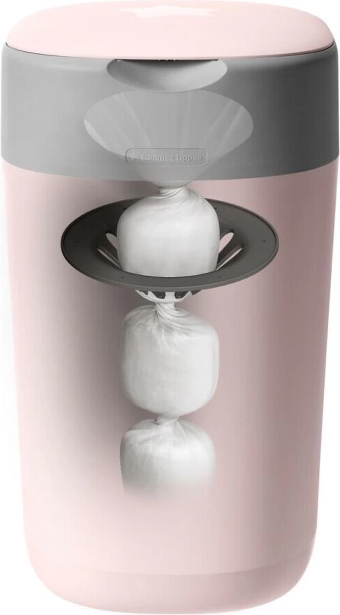 De Sangenic Tommee Tippee luieremmer Twist And Click Pink Eco zorgt ervoor dat de vieze luier van jouw baby in 3 stappen snel en luchtdicht wordt verpakt. De grote Sangenic luieremmer heeft plaats voor ca. 30 luiers. De luieremmer wordt geleverd met één geparfumeerde folie cassette en daar kun je ongeveer een maand mee doen. Je kunt een navulcassette los bij bestellen.