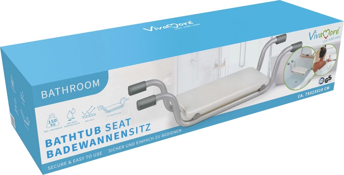 Doordat het badzitje van Vivamore op de badranden rust hoef je niet diep in bad te gaan zitten. Hierdoor sta je makkelijker weer op. Naast het feit dat je de badstoel zelf kunt gebruiken, is het ook een perfect medisch hulpmiddel voor thuiszorg en mantel zorgers om oudere mensen, dierbaren en revaliderende in en uit bad te helpen.