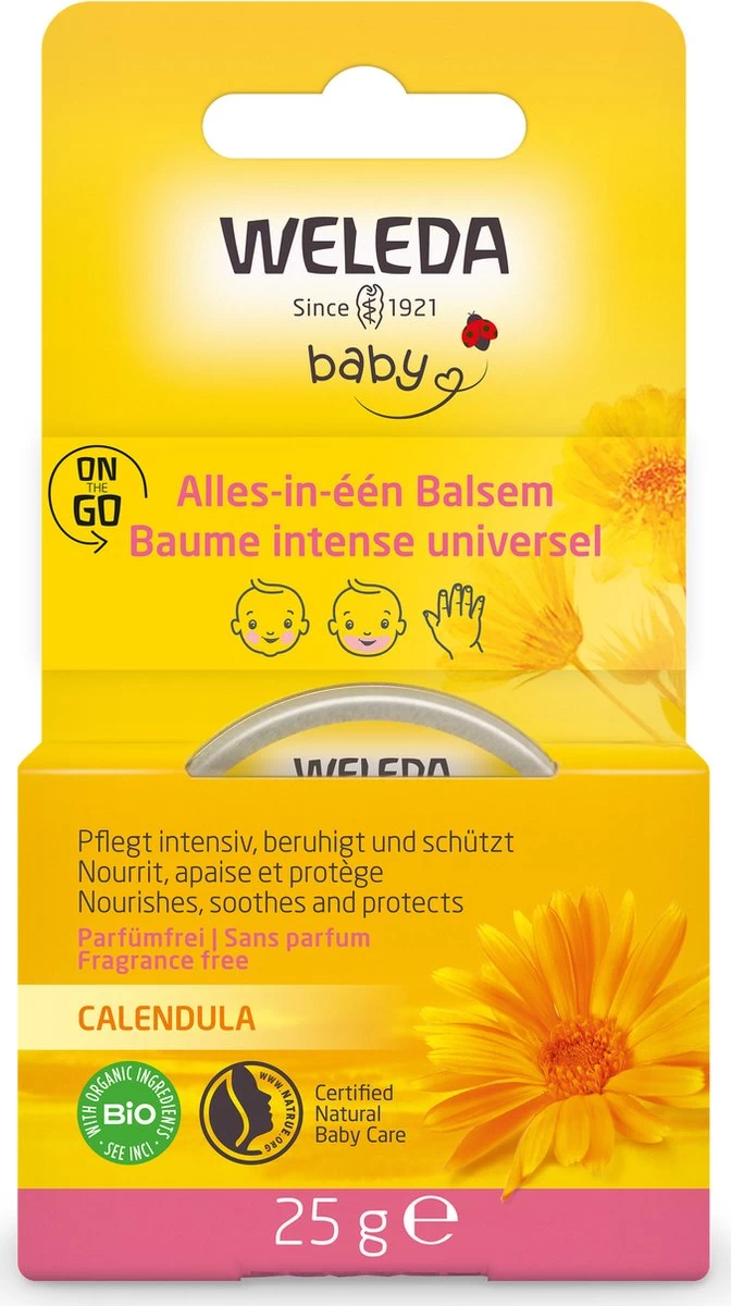 Deze alles-in-één Balsem van Weleda bevat biologische Calendula, sesam- en avocado-olie, cacaoboter en carnaubawas. Daarnaast is de balsem vegan, parfumvrij en vrij van water en alcohol.